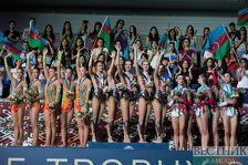 Сегодня в Баку на Национальной арене гимнастики прошла церемония награждения победителей и призеров в многоборье Кубка мира по художественной гимнастике в индивидуальных и групповых выступлениях. Соревнования выиграла российская команда. Второе место завоевали израильские гимнастки, а бронза досталась итальянкам. Хозяева соревнований, команда Азербайджана по итогам многоборья заняла седьмое место.